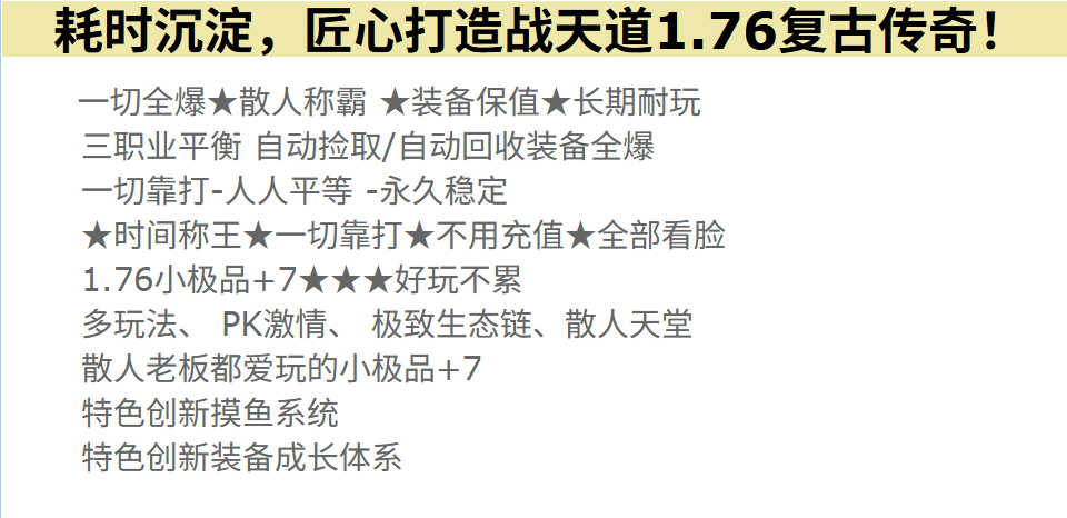 0 3.【开区时间】每天两个新区,装备靠打,人气保证。